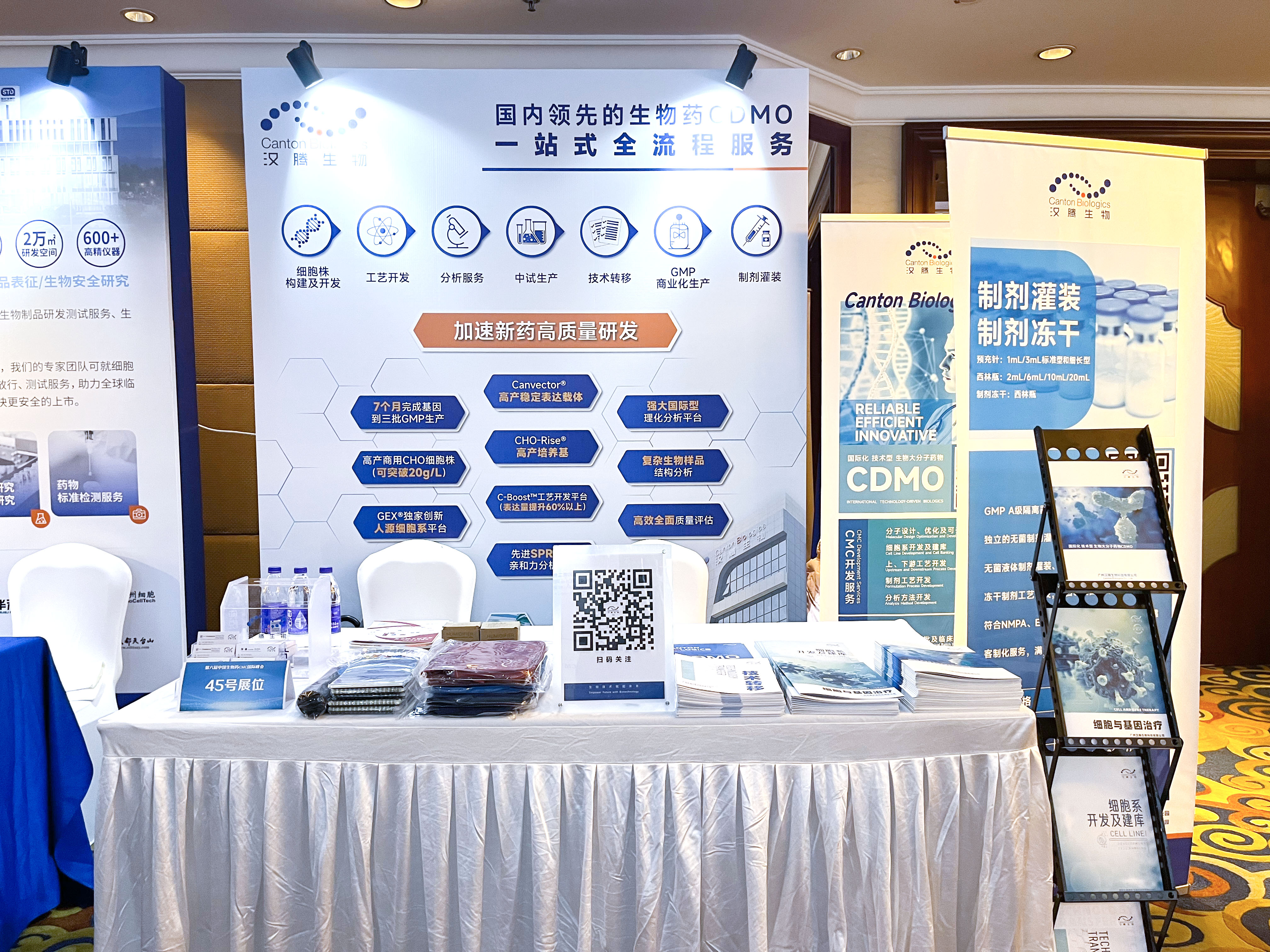 漢騰生物攜國內(nèi)領(lǐng)先的生物藥CDMO一站式解決方案精彩亮相,并由漢騰生物創(chuàng)始人兼CEO沈?yàn)t博士,漢騰生物副總裁Daniel Gao等多位高管,以及工作人員到場交流互動。漢騰生物的CDMO一站式解決方案包括了細(xì)胞株構(gòu)建及開發(fā)、工藝開發(fā)、分析服務(wù)、中試生產(chǎn)、技術(shù)轉(zhuǎn)移、GMP商業(yè)化生產(chǎn)和制劑罐裝等技術(shù)服務(wù),因其“7個(gè)月完成基因到三批GMP生產(chǎn)(高效)、高產(chǎn)商用CHO細(xì)胞株(可突破20g/L)、GEX®獨(dú)家創(chuàng)新人源細(xì)胞系平臺和復(fù)雜生物樣品結(jié)構(gòu)分析”等特色優(yōu)勢,吸引了不少觀眾駐足咨詢。