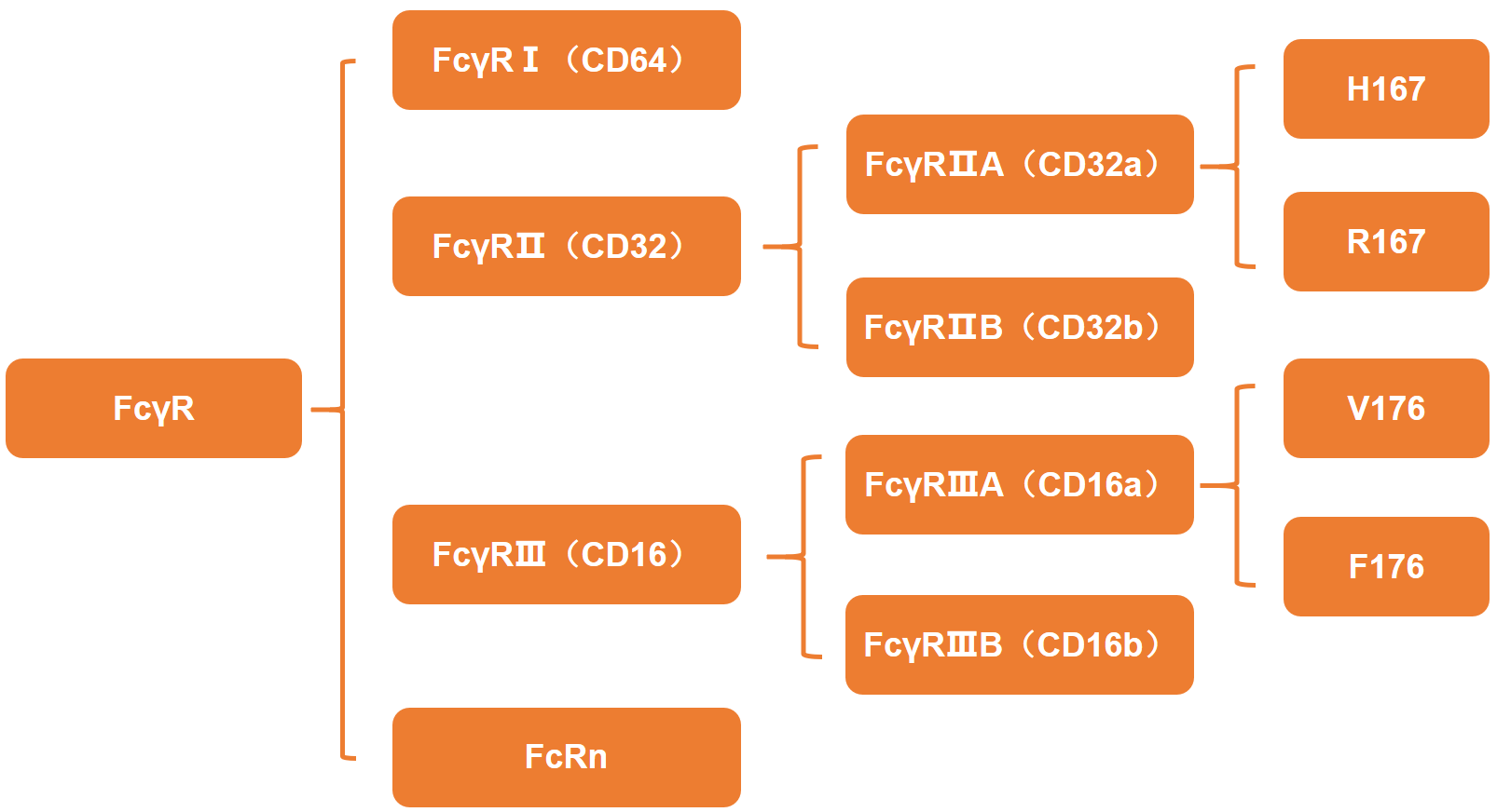 ADCC主要通過抗體與效應(yīng)細(xì)胞 (如NK細(xì)胞) 上的FcγRIIIA (CD16a) 結(jié)合而發(fā)揮對靶細(xì)胞的殺傷作用;ADCP主要通過抗體與效應(yīng)細(xì)胞(如巨噬細(xì)胞、中性粒細(xì)胞和樹突狀細(xì)胞等)上的FcγRI (CD64)、FcγRIIA (CD32a) 或FcγRIIIA (CD16a) 結(jié)合而發(fā)揮對靶細(xì)胞的吞噬作用,其中FcγRIIa (CD32a)被認(rèn)為是參與這一過程的主要Fcγ受體。